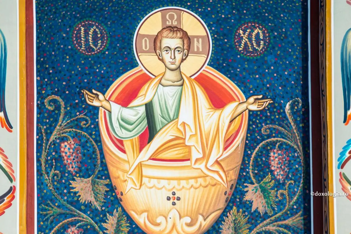 De aceea, atunci când preotul strigă: „Sfintele! Sfinţilor!” credincioşii răspund: – „Unul (e) sfânt, Unul (e) Domn: Iisus Hristos, întru slava lui Dumnezeu Tatăl” (Filip. 2, 11). (Ei vor să spună) că nimeni n-are de la sine însuşi sfinţenia, pentru că aceasta nu este rezultat al virtuţii omeneşti, ci toţi o avem de la şi prin Hristos. Atunci când pui sub soare mai multe oglinzi, toate strălucesc şi răsfrâng raze de ai crede că se văd mai mulţi sori, dar în realitate unul este soarele care se răsfrânge în toate; tot aşa şi Cel ce singur e sfânt, răsfrângându-Se în credincioşi, străluceşte în multe suflete şi pe mulţi îi arată sfinţi, deşi Cel cu adevărat sfânt este unul şi singur, întru nimic mai prejos în slavă decât Tatăl”.